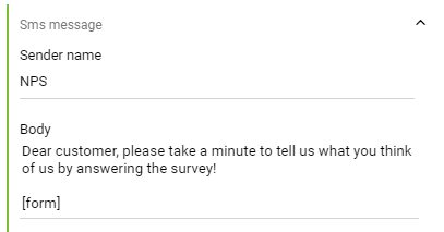 The snippet comes with a default NPS message and will be sent from sender name “NPS”. This is easily changed by following the steps below.