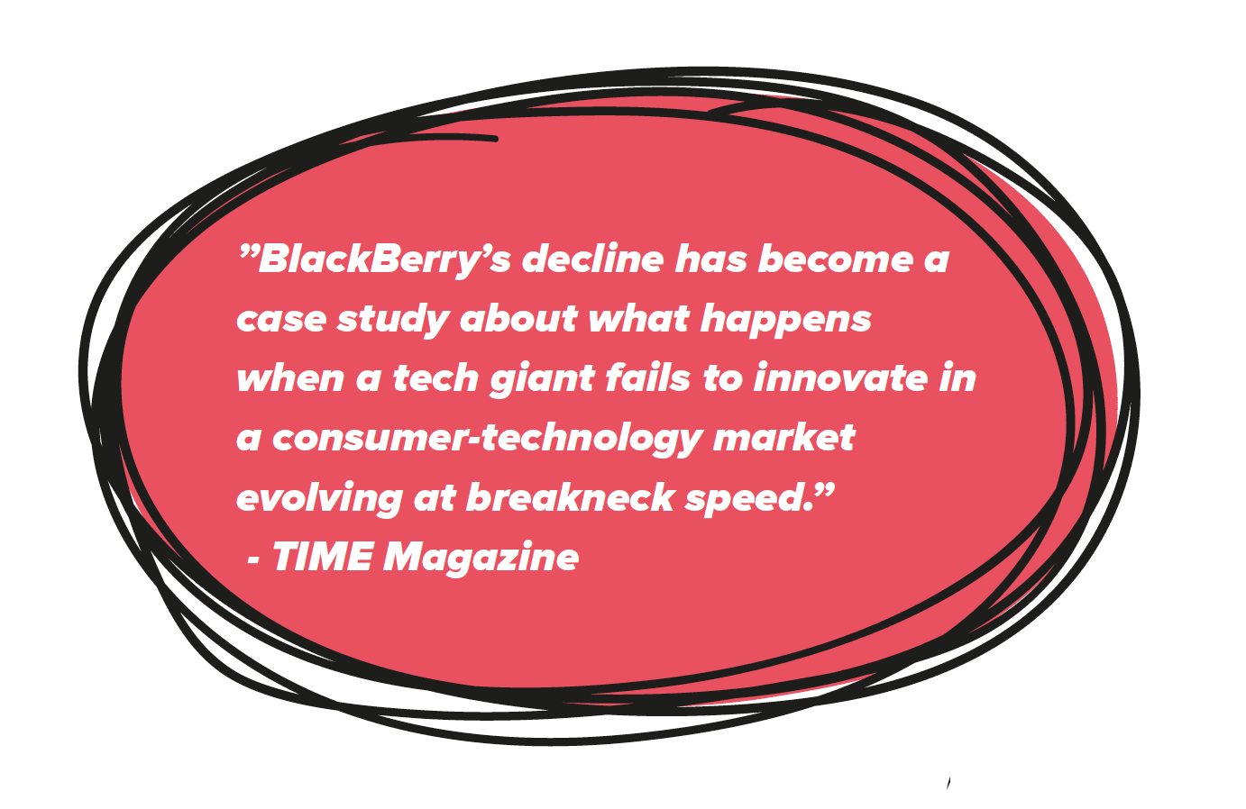 Jobs was willing to take everything that up to that point had been proven successful, wipe the canvas clean and visualise something anew. Blackberry fell behind and refused to give up their beloved features, in addition to never realising that consumers and not business customers would drive the market. They realised too late the emergence of the ’app economy’ and they failed to envision mobile phones as full-fledged entertainment hubs rather than mere communication devices. Lack of vision, lack of insightful willingness to change led to the downfall of a global corporation that once was the crowned king on a giant smartphone market.