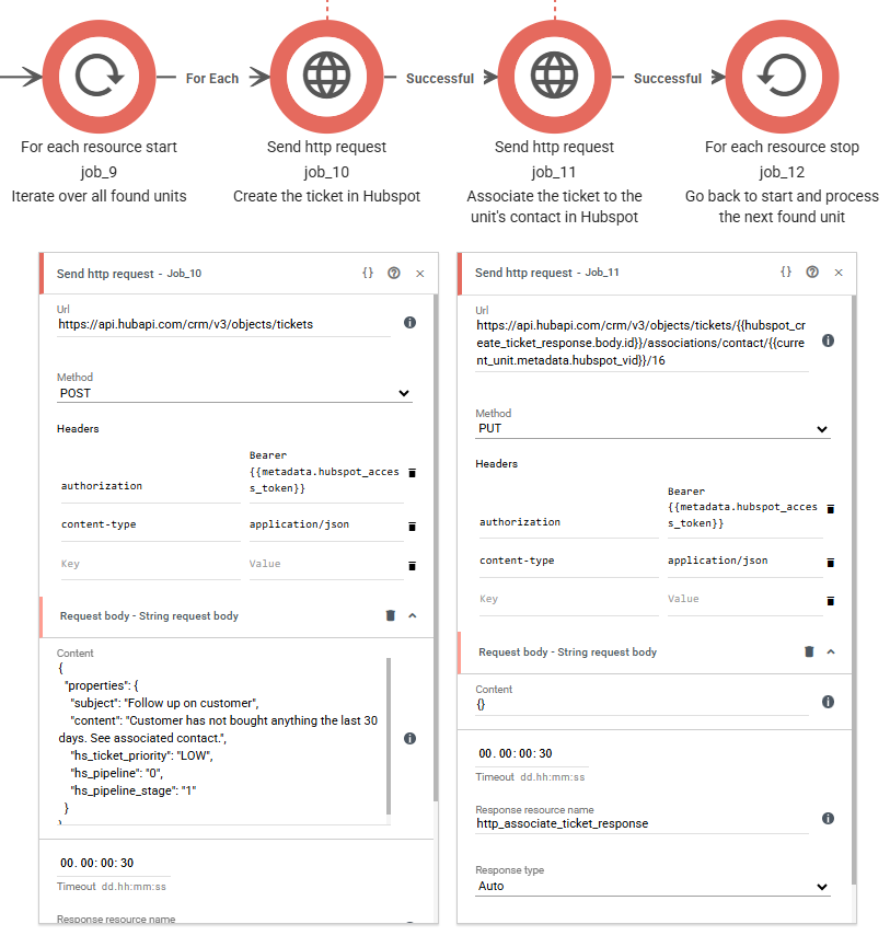 After this, we have another scheduled flow that checks for units with this metadata (hubspot_follow_up = true) where the last purchase was made more than 30 days ago. For each match, we create a ticket in Hubspot.